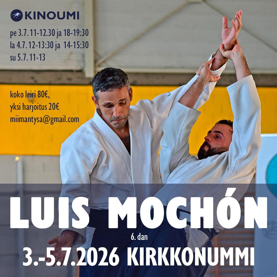 Tapahtumat Luis Mochón 6. dan Aikidoleiri Aikuiset 03.07.2026 00:00 05.07.2026 00:00 Kirkkotallintie 6, Kirkkonummi, Suomi Järjestävä seuraKinoumi Lisätiedot Kinoumi järjestää Luis Mochónin, 6. dan, aikidoleirin Kirkkonummella. Leiri pidetään Kirkkonummen keskustan väestösuojassa osoitteessa Kirkkotallintie 6. Hinnat: koko leiri 80 euroa, yksi harjoitus 20 euroa. Lisätiedot: miimantysa@gmail.com